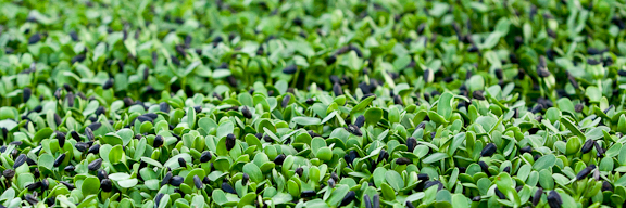 Sunflower greens are amazingly tasty, tender, and beautiful. They are grown from black oil sunflower seeds and take about 12 days from seed to green. They are a storehouse of nutrition including vitamins A, B, C, and E. an incredible amount of potassium, and are high in calcium, magnesium and iron. They are full of amino acids – almost 25% protein! Because they are germinated, the plants stored energy is activated, giving you more minerals and vitamins with fewer calories than a dry seed. These greens are delicious on their own, on a sandwich and in salad. Kids love them!
